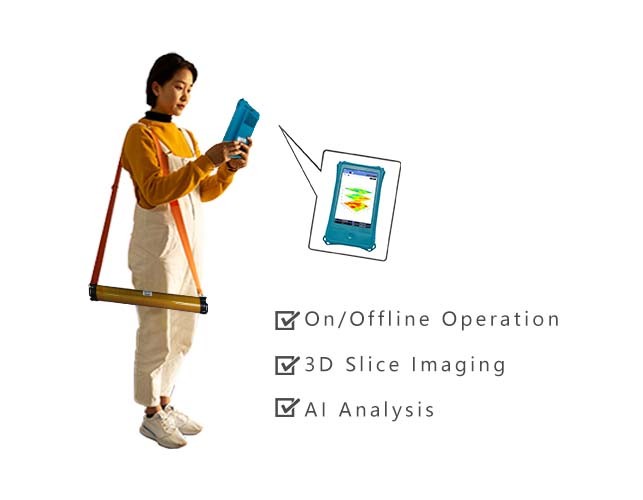 selectable depth sections, variety in scan interval options, auto 2D/3D imaging, AI expert interpretation of image, on/offline operation